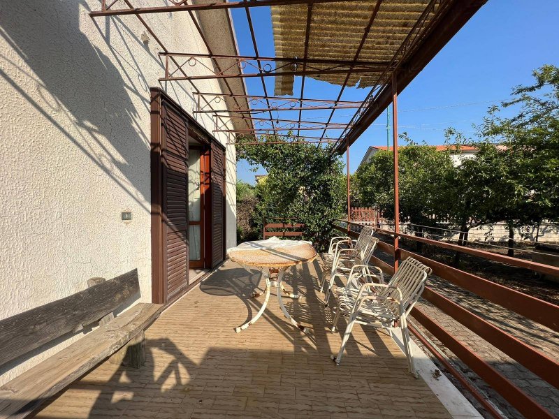 In posizione dominante e panoramica, a pochi passi dal centro, proponiamo in vendita una villetta disposta su due livelli. Al piano terra troviamo due ingressi, cucina, salone, 2 camere e bagno, mentre al primo piano ci sono due vani depositi e un garage al piano terra Completano la proprietà una cantina interrata, un giardino su 4 lati con piante ornamentali e pozzo per irrigazione. Zona ben servita.